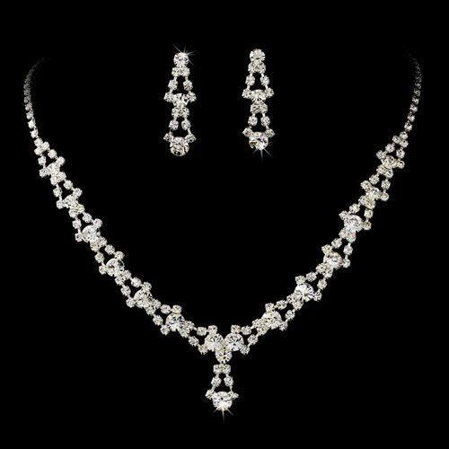 Color: Silver, Clear Material: Clear Crystal Rhinestones, Metal Casting, Rhodium Plated Dimensions (Size): Necklace: Necklace:...