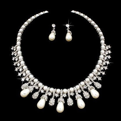 Bridal Wedding Jewelry Set Necklace Crystal TD Pearl Bib Choker Design