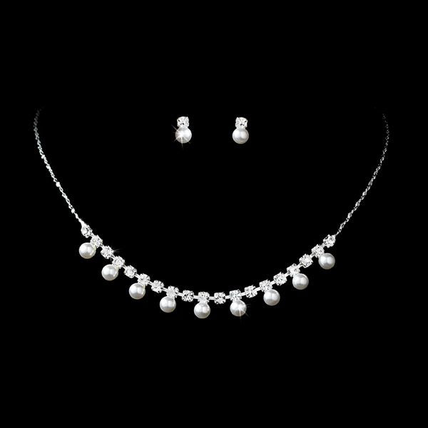 Bridal Wedding Jewelry Set Crystal Rhinestone Elegant Pearl Necklace