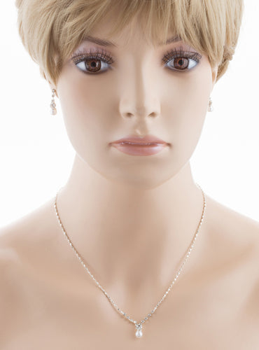 Bridal Wedding Prom Jewelry Set Elegant Dainty Pearl Crystal