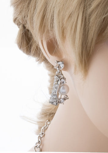 Material: Clear Crystal Rhinestones, Clear Glass Stones, White Faux Pearls, Metal Casting, Rhodium / Silver Plated