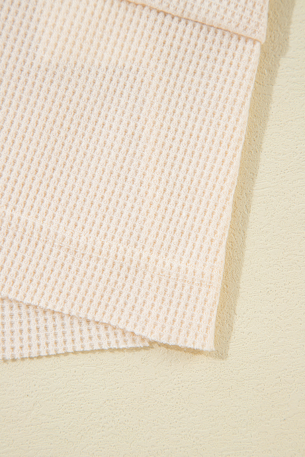 Pink Waffle Long Sleeve Collared Half Button Relaxed Fit Top